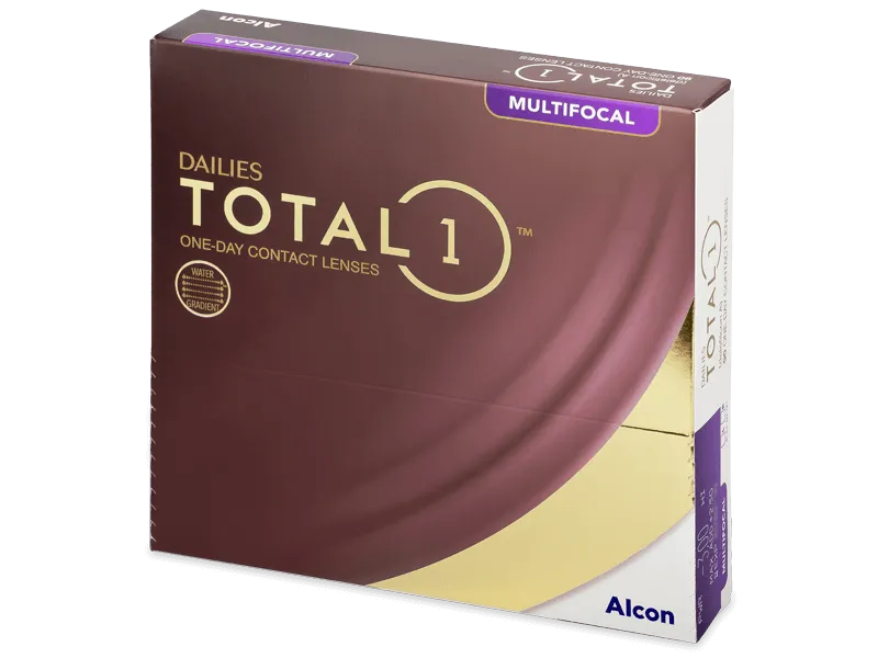 Dailies Total1 Multifocal are daily, silicone-hydrogel contact lenses from producer Alcon (formerly Ciba Vision). They have a variable water content. The production technology combines classic hydrogel material, which contains a high amount of water, and silicone-hydrogel, which provides the necessary oxygen permeability to the cornea. Both materials create extra comfort. The contact lenses are supplied in a pack of 90 lenses.